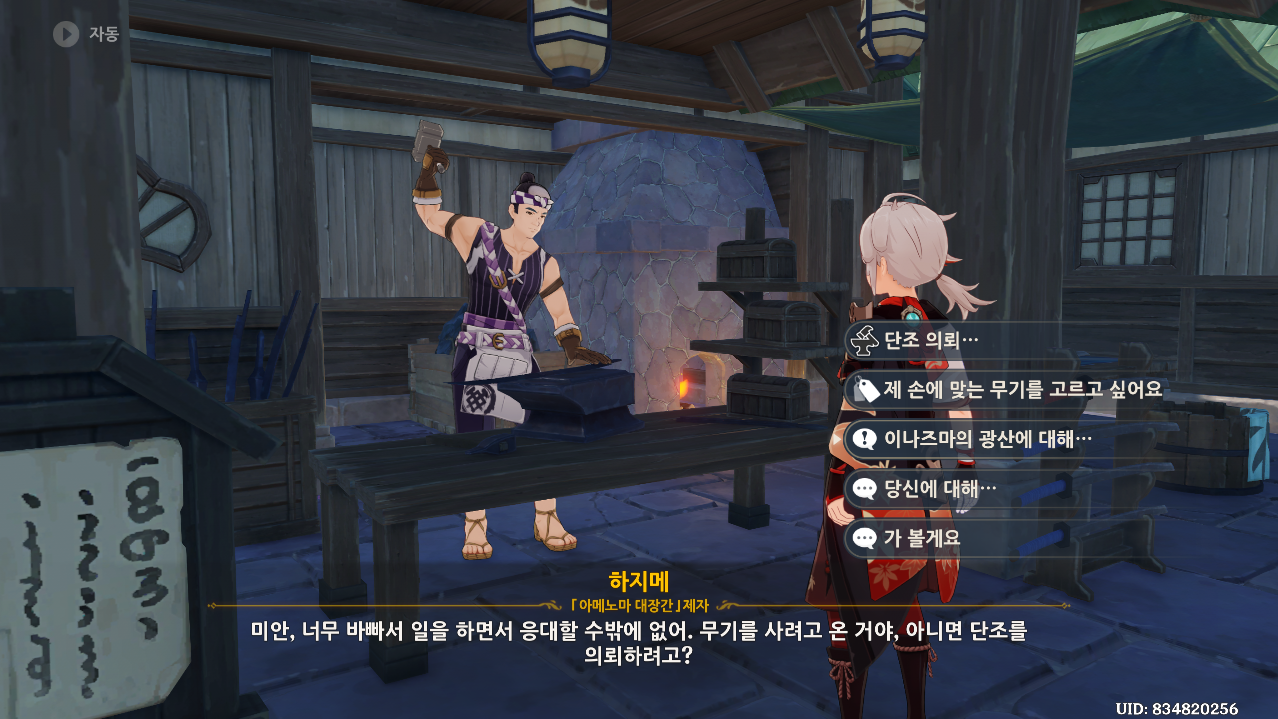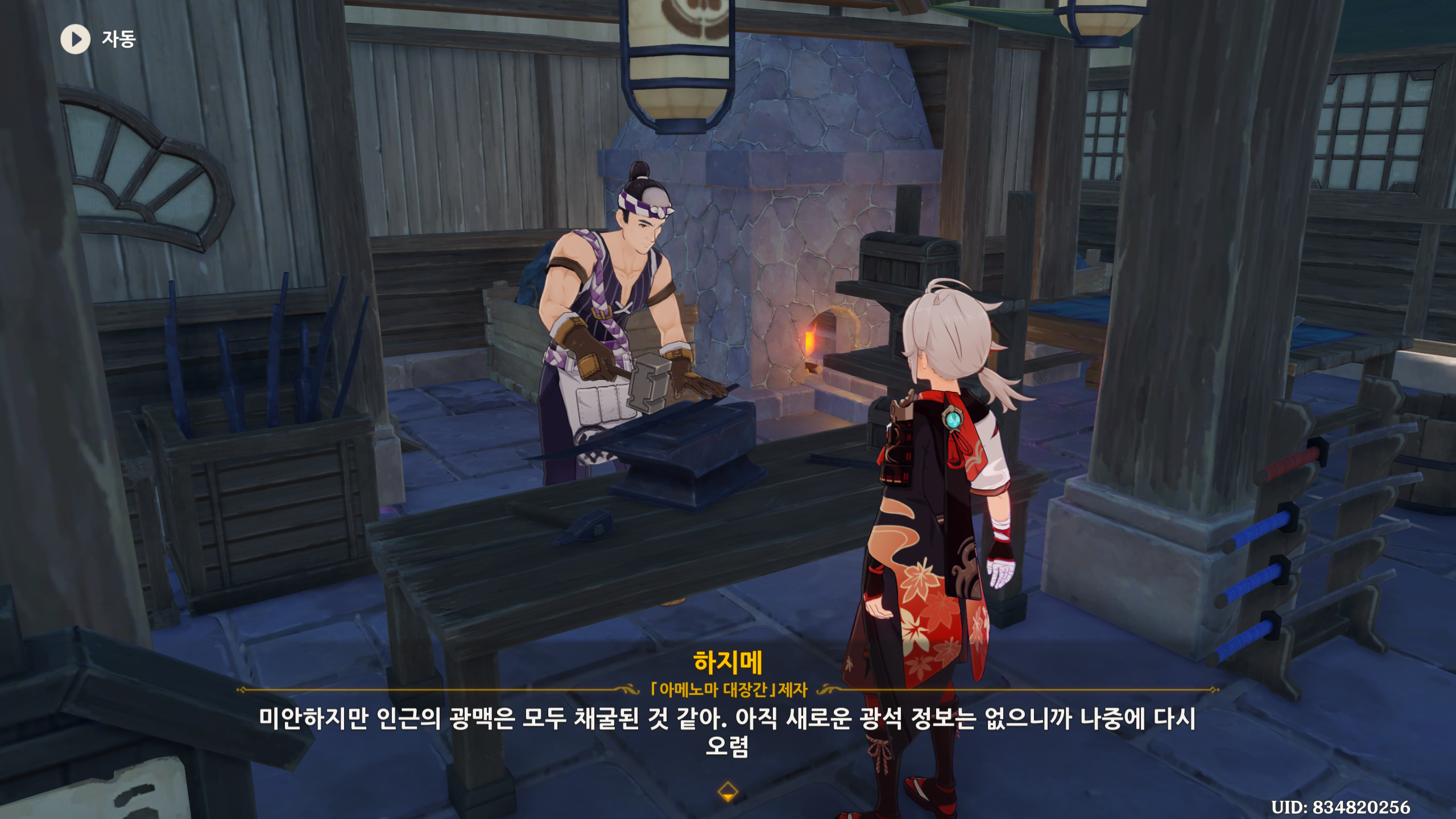 대화를 하면 이나즈마 광산에 대해서...이 생긴다. 이걸로 대화 진행