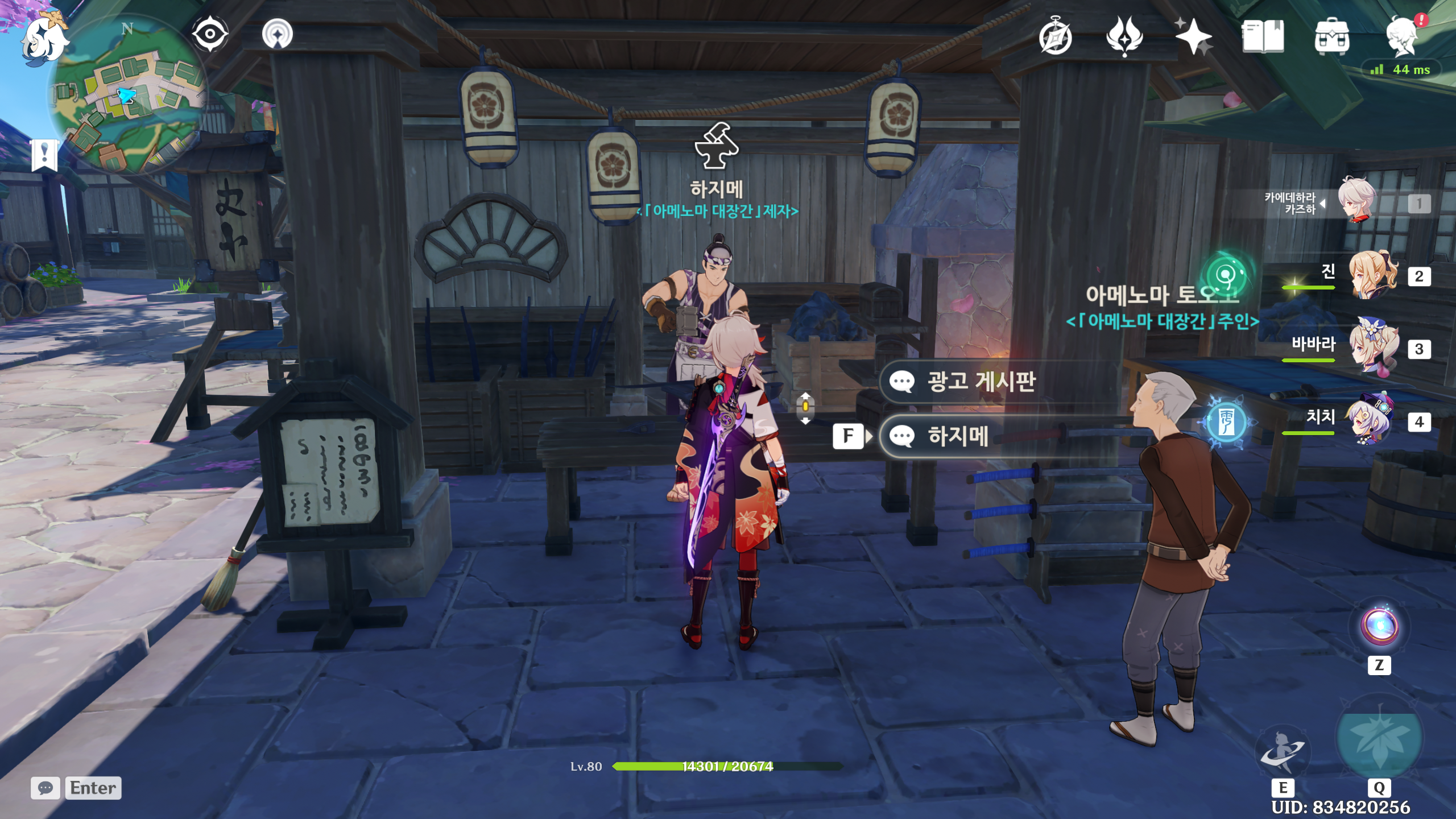 1. 이나즈마 평판 2레벨 달성 후, 이나즈마성 하지메를 찾아갑니다.