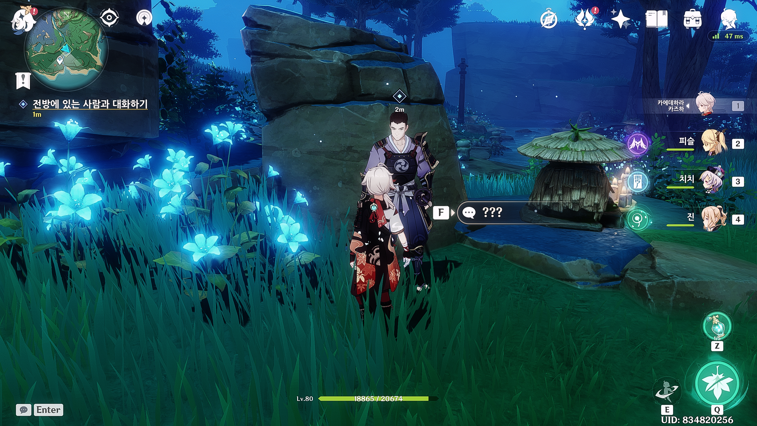 원신 이나즈마 서브 퀘스트입니다. 퀘스트 시작 지점 위치 1. 동욱과 대화를 시작합니다. 2. 번개의 벚나무에서 자라는 꽃게를 구해달라고 하는군요. 번개의 벚나무 근처로 가면 황금 빛으로 빛