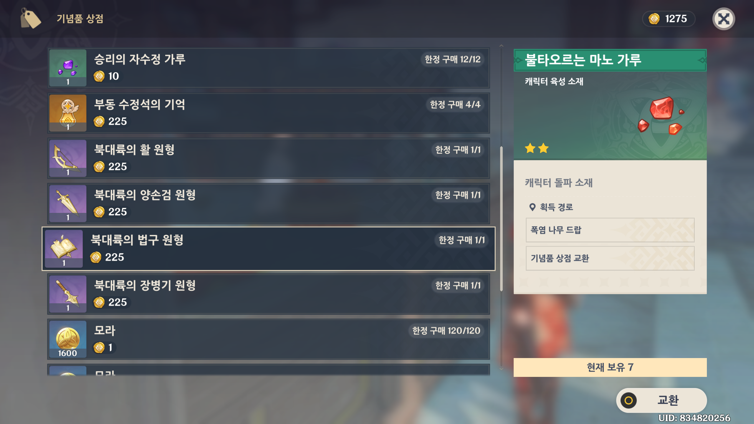 나머지 북대륙의 원형은 리월의 기념품 상점 명성재 주인 성희에게서 1회 구매가 가능하다.