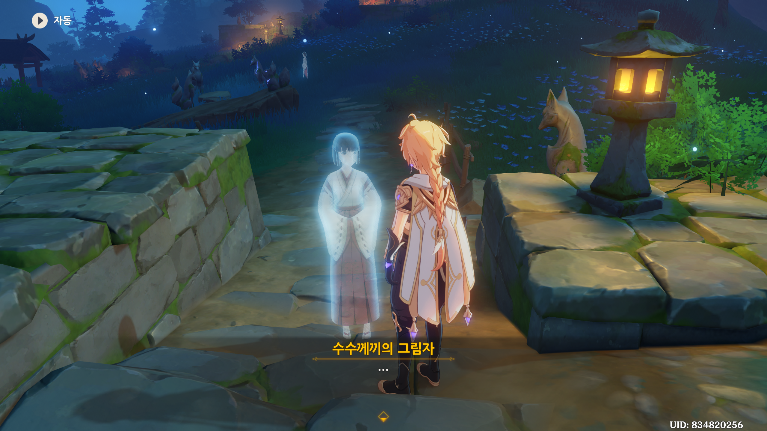 2. 황폐한 신사 안 수수께기 그림자와 대화를 하면 대꾸없이 사라지며 이동합니다.