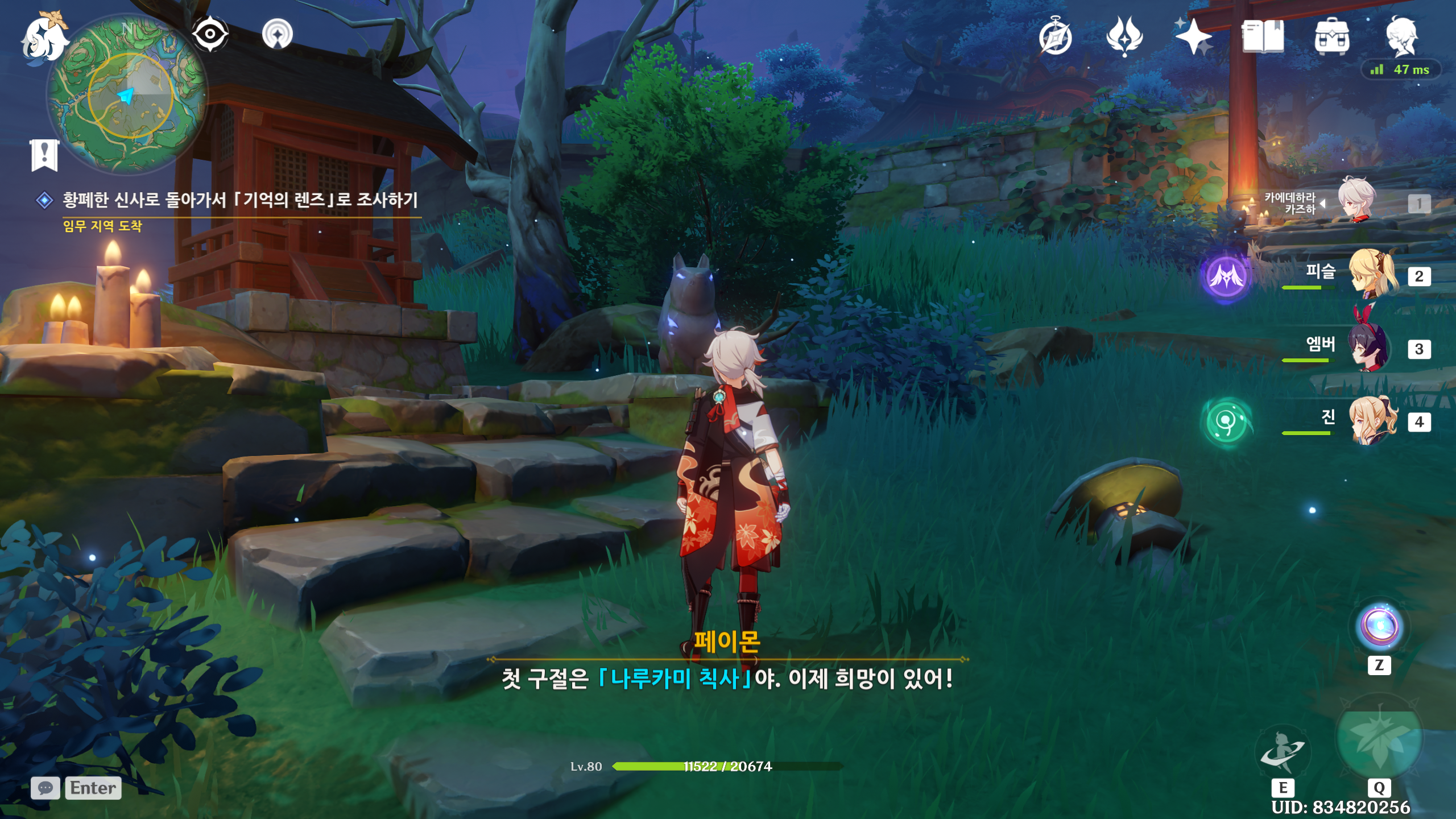 1. 이곳에 도착하면 퀘스트가 변경되면서 신사 조사를 시작합니다.