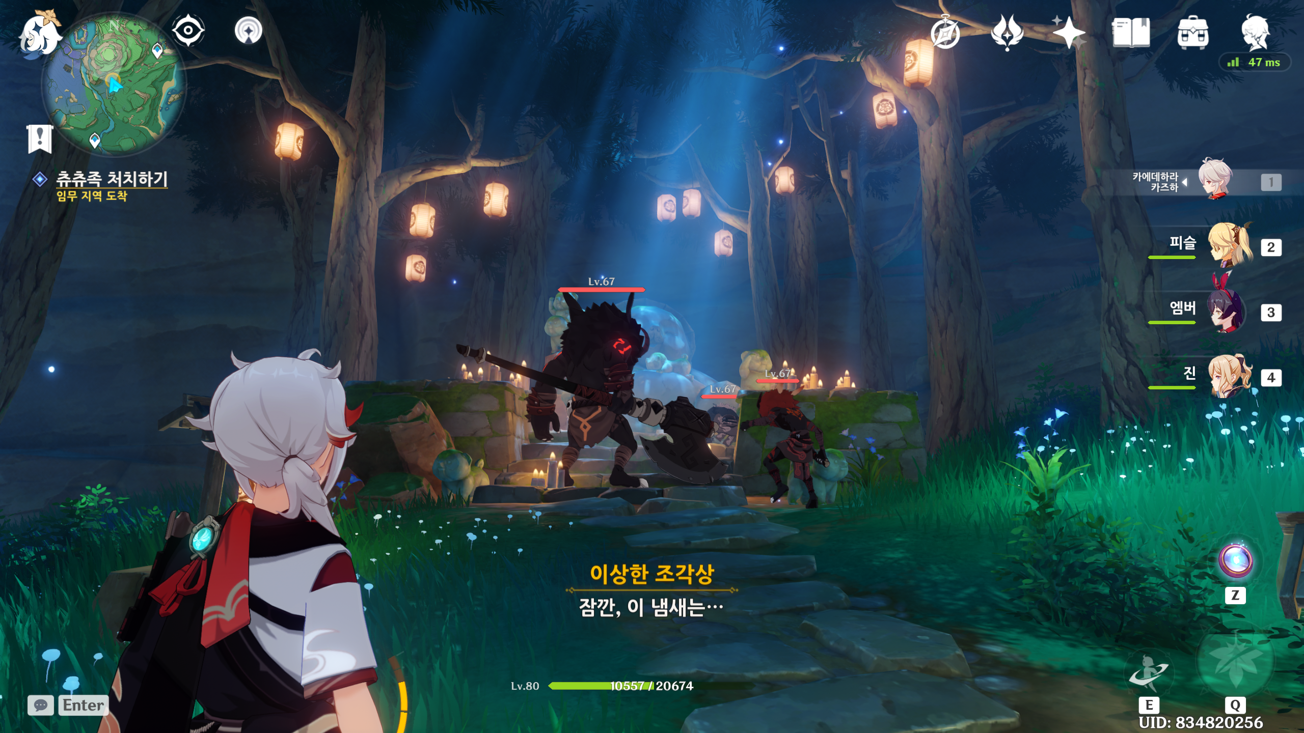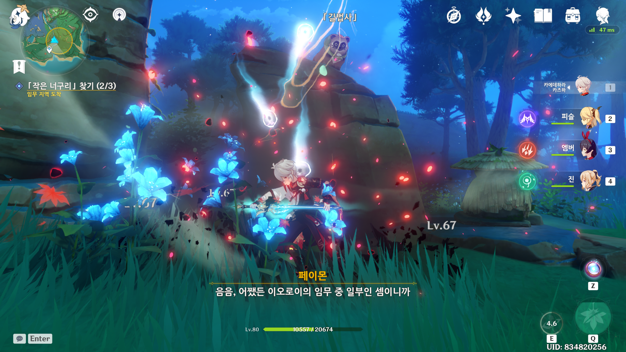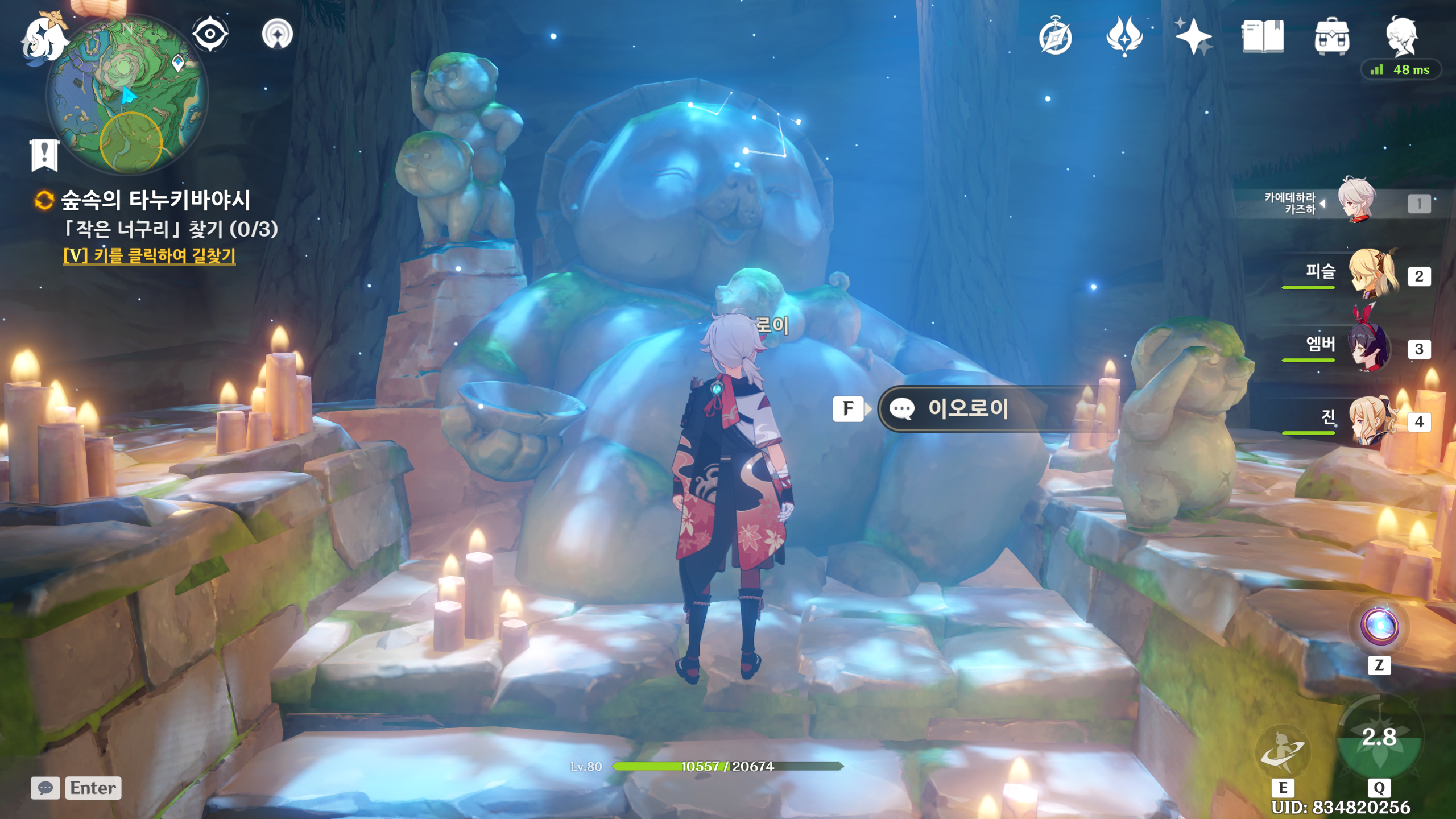 3. 츄츄족을 처치하고 너구리동상과 대화후 퀘스트를 진행합니다. 작은너구리 3마리를 찾아야 하는군요..