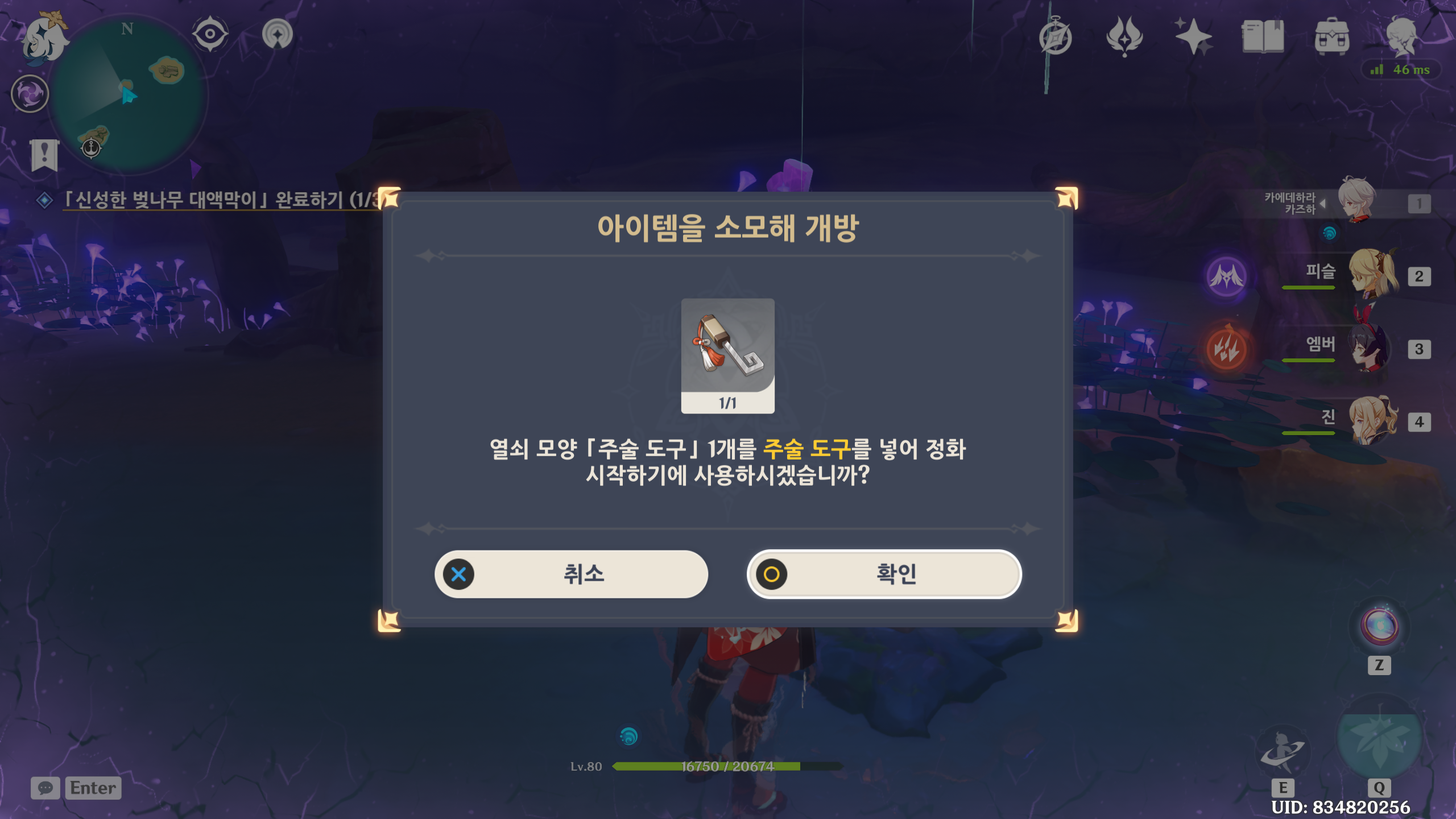 6. 다른곳과 마찬가지로 아까 얻은 열쇠 주술도를 정화 시킨다.